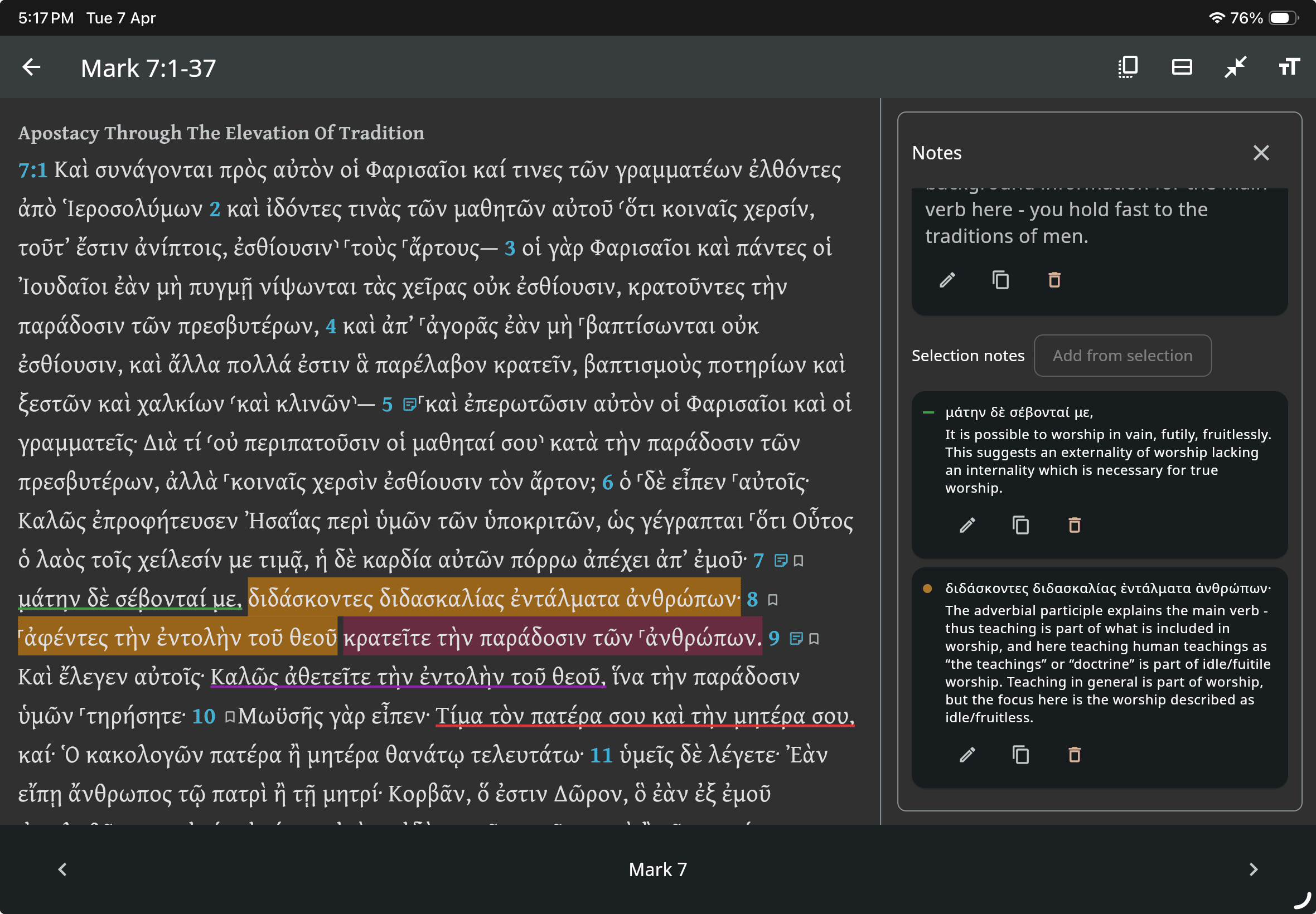 Do you own one of the 400,000 printed copies of Mounce's Basics of Biblical Greek? Or any Greek grammars at all? I wonder if you also share in one of the unfortunate realities that a lot of people with Greek grammars have... 1). You've not actually learned Greek from the grammar to the level you want. or 2). You've completed Greek from a grammar, but never reached the skill level where you're able to actually read New Testament Greek from a GNT. We've served hundreds of Christians with these...